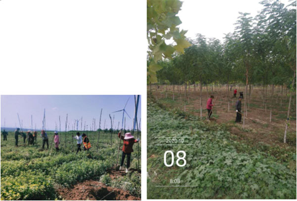 上圖為工人對新造林進(jìn)行澆水和除草。